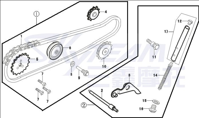 SPANNROLLENWIPPARM STEUERKETTE 125CC ABB. 2.3