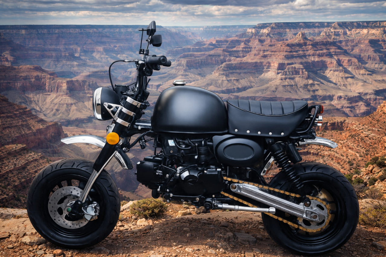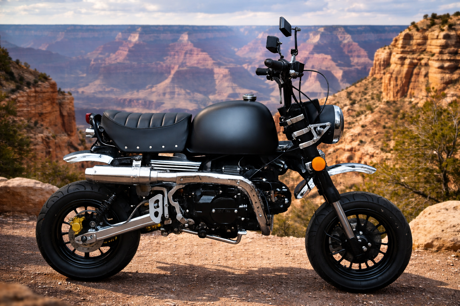 Die neuen Skybongo 125 PRO Modelle kommen alle mit der neuen Motor-Einspritzung (niedriger Kraftstoffverbrauch und ein plus an Leistung u. Durchzug & bessere Laufruhe), Up-Side-Down-Vodergabel, V2-Sportauspuff, ALU-SCHWINGE, AFAM-GOLD KETTE, NGK ZÜNDKERZENSTECKER, geänderter Übersetzung & Heidenau K61/K58 (zur Wahl) Reifen vo+hi 110/70-12 & 110/70-12