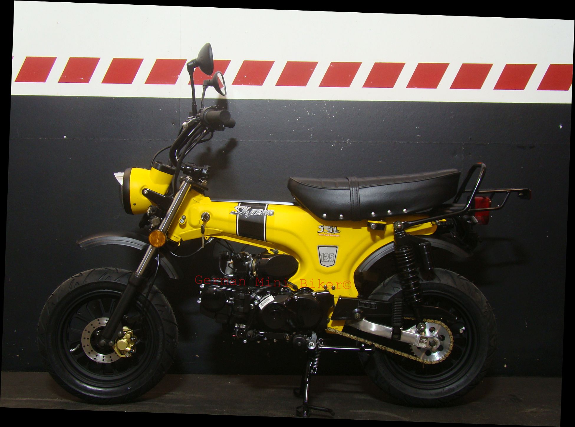 Die neuen Skymax 125 12" SE Modelle kommen alle mit der neuen Motor-Einspritzung (niedriger Kraftstoffverbrauch und ein plus an Leistung u. Durchzug & bessere Laufruhe), ALU-SCHWINGE, AFAM-GOLD KETTE, NGK ZÜNDKERZENSTECKER, geänderter Übersetzung & Heidenau K61/K58 (zur Wahl) Reifen vo+hi 110/70-12 & 120/70-12 oder Conti Weßwand 1207/70-12" vo+hi.