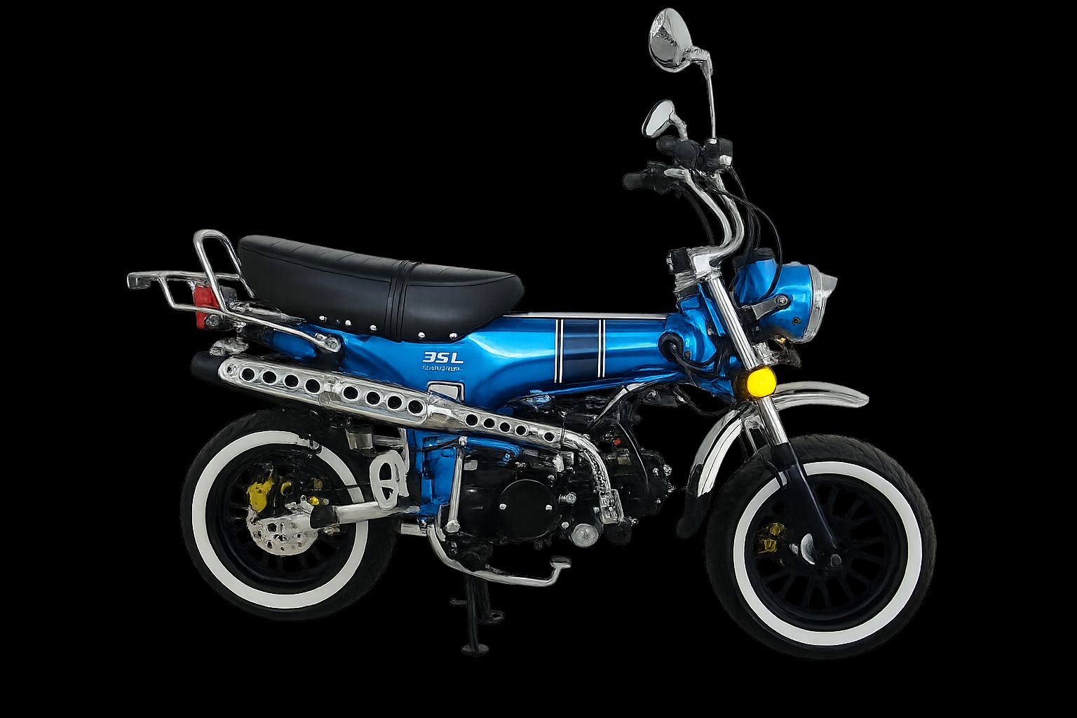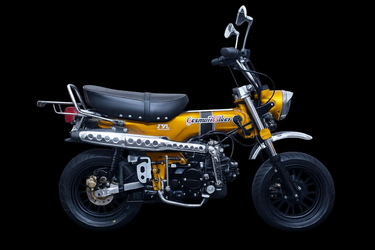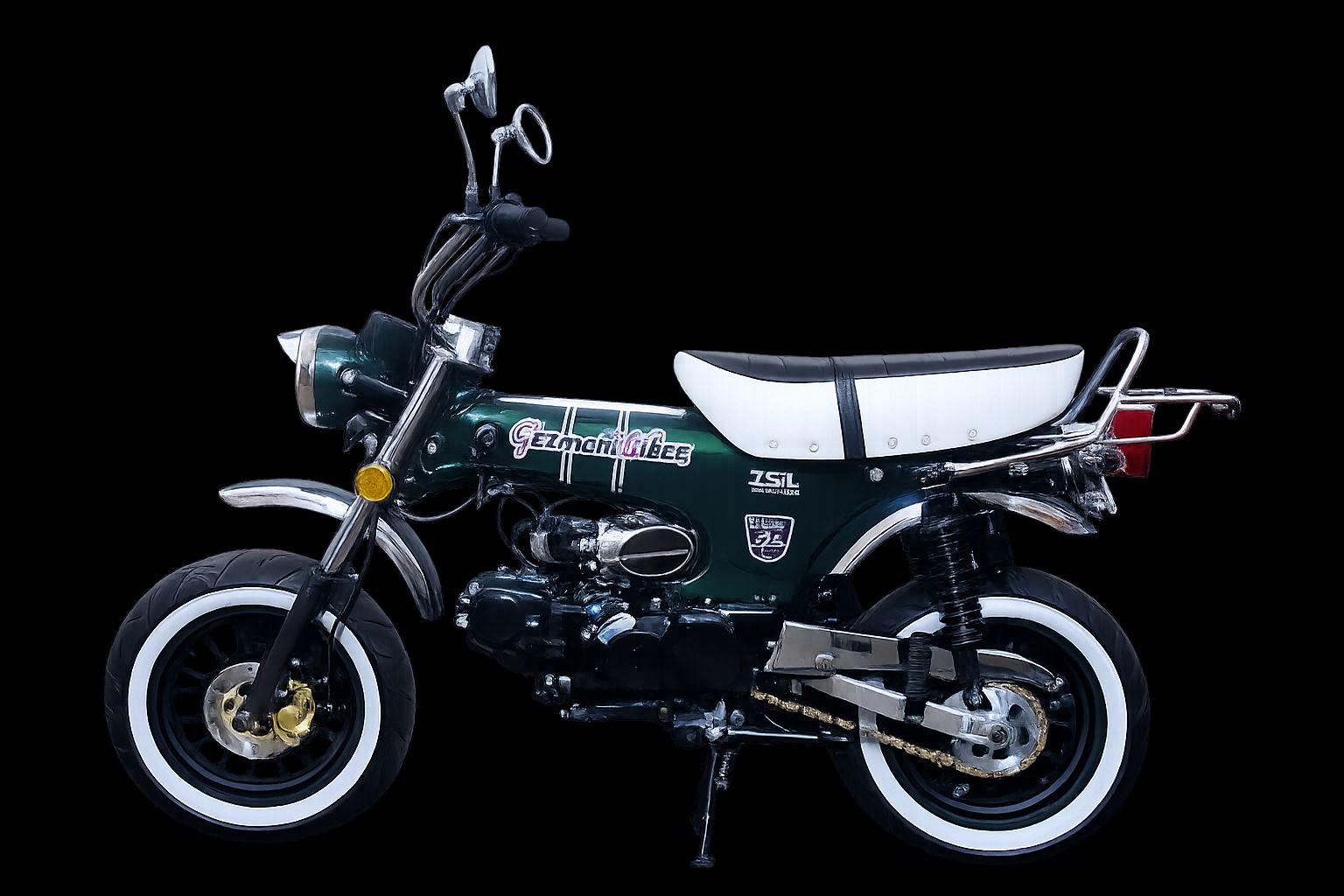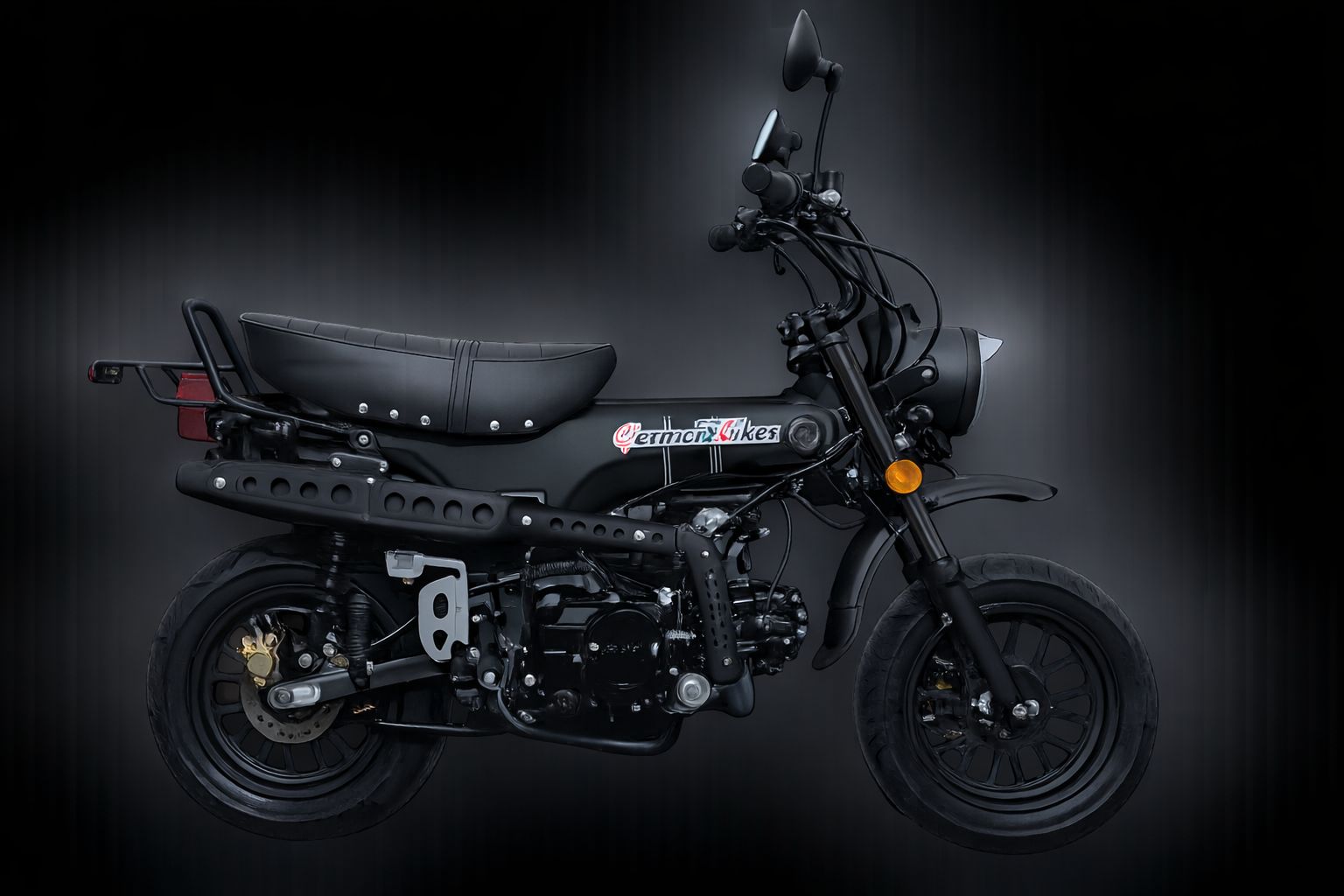 NEU: Scheibenbremse vorn + hinten, längere Aluminium Hinterrad Schwinge, Räder 12" Alufelgen mit Conti / Heidenau Reifen 110/70-12, AFAM Gold Kette, Lenker PRO oder Klapplenker